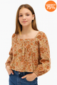POMPdeLUX Girl's Stiped Dusty Rose Long Sleeve Blouse