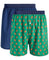 A 2‑pack of Club Room men’s boxer shorts in navy and green, featuring a fun football design for casual comfort and everyday wear.