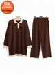 - Flattering Wide-Leg Pants: High-waisted, soft knit trousers with a comfortable ribbed waistband and a modern wide-leg cut.