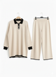 The skirt is high-waisted and has a matching tie-front detail that creates a high slit.
