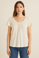 Constructed with a rib knit, this is a slim fit tee with a low, curved V-neck.