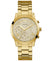 GUESS designed this traditionally-inspired multifunction timepiece with a large informative dial set in a gold-tone stainless steel case and bracelet.