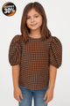 POMPdeLUX Girl's Dark Camel Long Sleeve Blouse