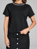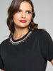 This Sinsay Women's Black T-shirt features a unique decorative neckline, adding a touch of style to any outfit. Made with comfortable fabric, this t-shirt is perfect for everyday wear. Elevate your wardrobe with this versatile and chic piece from Sinsay In Lebanon.