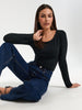 Sinsay Women's Black Basic Cotton Rich Long Sleeve T-shirt