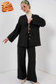 Vince Camuto Women's Black Flutter Sleeve Plaid Henley Blouse