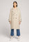 This coat is made from a blend of drape and wool. It features a straight cut and features a double-breasted button closure, long sleeves, a notched collar, two side pockets, and a fabric lining.