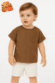 POMPdeLUX Boy's Brown Houston Henley Short-Sleeve T-Shirt – Casual, Stylish & Comfortable!