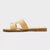 - Medium-widthDescriptionGive your casualwear outfits a stylish finishing touch with these Nina Slide Slipper from A New Day™. The slip-on slide sandals feature a breezy open toe and back design that's complete with a stylish top band for a stay-put fit, plus a .25in block heel adds height without compromising on comfort. Pair the sandals with everything from shorts to dresses to create a variety of fun warm-weather ensembles.Sizing: Women'sConstruction: Instep StrapFootwear Insole Material: 100% PolyurethaneFeatures: Slip OnCare and Cleaning: Clean With Mild DetergentFootwear Lining Material: 100% PolyurethaneToe Style: Round ToeFootwear Upper Material: 100% RaffiaHeel: Approximately 0.25 Inches Block HeelFootwear Outsole Material: 58% Polyester and 42% TPR (Thermoplastic Rubber)Shoe Width: WideFootwear toe openness: Open ToeFootwear outsole details: Textured Outsole