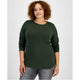 BCX Women's Black 3/4 Floral Printed Sleeve Blouse