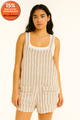 The Sunset Short Sundress from Sea Level is a mini cotton dress with thin straps, a tiered skirt and a gathered neckline, perfect for days on the beach.