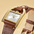 • Dial: Rectangle gold stainless steel case, with a white sunray dial and gold accents.