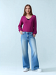 Vince Camuto Women's Fuchsia Smocked Pleated Silk V-Neck Blouse