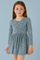 POMPdeLUX Girl's Printed Blue Organic Cotton Long-Sleeve Dress