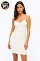A ribbed knit crop top featuring a square-cut neckline and back, shoulder straps, and high-polish hook-and-eye side closures.