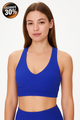A black, short-sleeved crop top on a mannequin. The top features a prominent white lace-up detail down the front, with a deep V-neckline. The sleeves appear to be short and slightly ruffled at the shoulders.