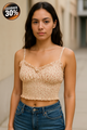 This charming coral crop top features a flattering V-neck wrap-front design that ties at the back for an adjustable fit. It's enhanced with playful, voluminous puff sleeves and a stylish keyhole cutout at the back. Crafted from a lightweight fabric, this top offers a sweet and trendy look perfect for warm weather or a casual-chic ensemble.