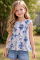 Crafted for active young girls, this sleeveless ruffle top features a vibrant multicolor floral print that brings playful energy to any wardrobe. The lightweight design offers breathability for warm weather wear, while the ruffled detailing adds movement and visual interest. Perfect for casual outings, outdoor activities, or layering during transitional seasons. The versatile print pairs effortlessly with solid-colored bottoms, making it a practical addition to any girl's collection.