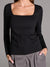 Sinsay Women's Black Squared Neck Long Sleeve Blouse