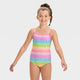 Sinsay Girl's Light Pink Striped Cherry Printed Swimsuit