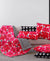 • Features red and pink floral motifs printed on a white ground
