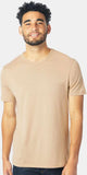3.98 oz., 100% cotton jersey; Heather Grey is 60% cotton / 40% polyester; 30 singles; Men's regular fit; Garment-washed; Tear-away tag;