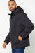 The jacket in the image appears to be a men's black hooded insulated jacket or parka, likely a puffer style. Visual search results suggest it could be a jacket from brands like Gant, Regatta, or Jack & Jones, among others.