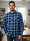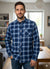 This is a classic long-sleeved flannel shirt featuring a striking blue plaid pattern. The design combines several shades of blue and white to create a versatile and appealing casual garment.
