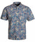 Allover palm print; front button flap pocket with sunglass slot; vented back yoke with mesh inside for breathability