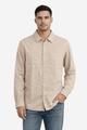 Celio Men's Khaki Plain Regular Cotton Linen Long Sleeve Shirt