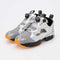 A bold, retro-inspired sneaker featuring Reebok’s iconic Instapump technology for a customizable fit, vibrant silver, black, orange, and grey color blocking, and a striking athletic silhouette perfect for street style and everyday wear.