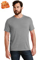 3.98 oz., 100% cotton jersey; Heather Grey is 60% cotton / 40% polyester; 30 singles; Men's regular fit; Garment-washed; Tear-away tag;
