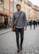 Manguun Men's Grey With White Stripe Detail Knit Sweater