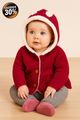 - Hooded; front zipper closure