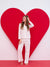 Sinsay Women's White & Red Heart Printed 2 pcs Pajama Set