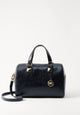 | Features | Polished pebble leather Inside snap pocket Center zip compartment Turnlock and snap closures, fabric lining Four protective feet at base |