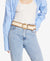 Steve Madden Women's Beige Round-Buckle Raffia Stretch Belt