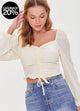 Forever 21 Women's Light Pink V-Neck Cutout Long Sleeve Blouse