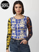 Forever 21 Women's Purple Multi Long Sleeve Crop Top