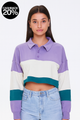 Forever 21 Women's White & Blue Chest Printed Long Sleeve Blouse