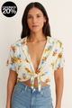 Forever 21 Women’s Pale Yellow Cut-Out Short Sleeve Blouse