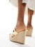 Shoes by Steve Madden Step into summer Wide straps Slip-on style Peep toe Straw midsole High wedge heel