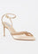 bring elevated glam with a touch of vintage romance. Featuring a soft champagne satin upper, delicate open toe design, and a slender ankle strap with buckle, these heels are perfect for formal occasions, elegant nights out, or statement-making moments.