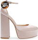 make icy glam unforgettable. Featuring a shimmering arctic blue faux croc-embossed upper, paired with rhinestone-encrusted straps, these statement heels bring sparkle and texture together in a striking silhouette. Designed with a high stiletto heel, open toe, and secure ankle strap, they’re tailored for standout style at any party, gala, or elegant night out.