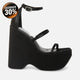 Make a dramatic entrance in CAGEY. This undeniably eye-catching pair features a high double platform, block heel and smooth satin finish. Perfect for giving you that "legs for days" look.
