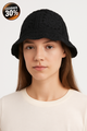 Elevate your casual style with this classic black crocheted bucket hat. Made with a sturdy, tightly knit construction, this hat offers a comfortable fit and timeless appeal. The solid black color makes it a versatile accessory that can easily complement a wide range of outfits, while the crochet texture adds a unique, artisanal touch. Perfect for everyday wear, adding a chic finish to your look, or providing sun protection with a stylish edge.
