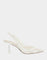 Betsey Johnson Women’s White Nikki Ivory Heel Step out in style with the NIKKI sling back heels! Featuring a chic pointed toe and embroidered detailing, these shoes are perfect for adding a touch of elegance to any outfit.  Mesh textile upper material embellished...