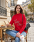 Karl Lagerfeld Paris Women's Red Embellished Graphic Mockneck Sweater