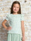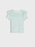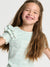 Sinsay Girl's White & Green Striped & Ruffled On Shoulders T-Shirt