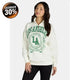 The crew neckline with openwork ruffles and dropped shoulders add charm and elegance. Long, loose sleeves with openwork ruffles and a ribbed hem complete the look.